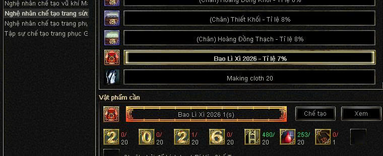 - Thu thập nguyện liệu để chế tạo lên Bao Lì Xì 2026 để thu thập Đào Chi Hộ Thể